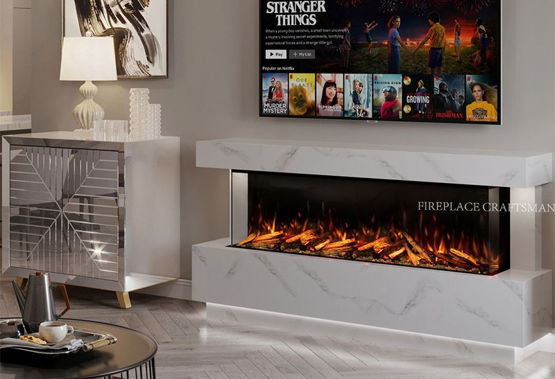 Perapian listrik 3 sisi nyayogikeun pamandangan seuneu anu panorama, nyiptakeun titik fokus anu endah di lobi hotél, rohangan réstoran, atanapi lingkungan showroom. Pikeun hotél, desain ieu ngadorong tamu cicing langkung lami sareng ningkatkeun skor kapuasan. Distributor tiasa ngamangpaatkeun daya tarik visual ieu pikeun narik klien komérsial anu milarian pamasangan anu berdampak tinggi.